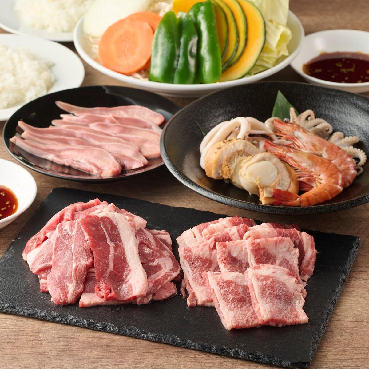 \ラム・牛カルビ、さらに海鮮も食べ放題!100分飲み放題付でさらに満足!+ラムタン付/